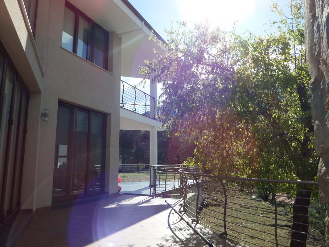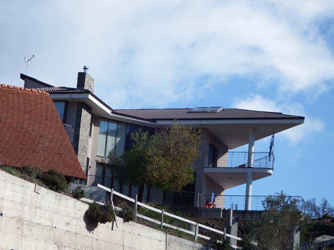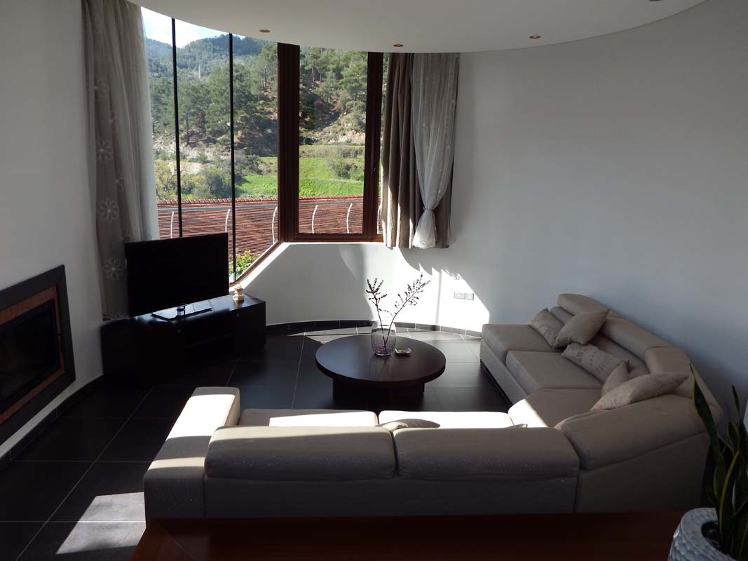 The site is located on the top of a hill in Kannavia village, gaining a magnificent view of troodos mountain range and a great amount of sunlight. During the first visit of the architect on the site he realized that in the site were planned some bushes in such a way that they were showing respect to the shape of the earth. With the way that the bushes were plant they were accommodated by the inclination of the hill. In the same way the volumes of the house were placed on that hill.