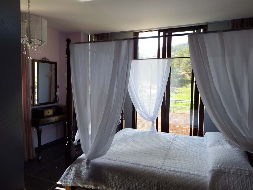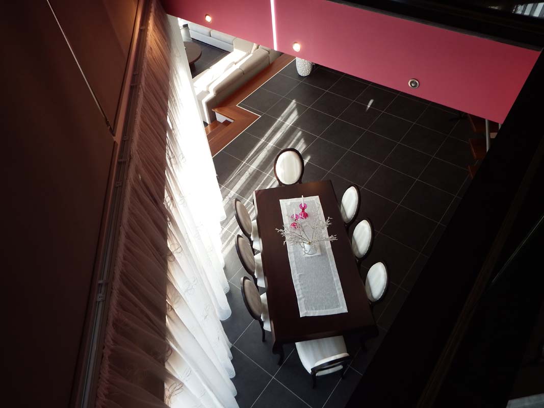 On the top floor there are four bedrooms in the internal and a balcony at the external. On the dining room there is a hole on the celling which lets the hot air to go out cooling this way the space.